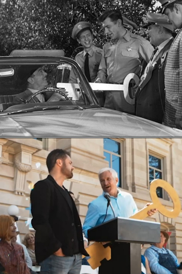 Mr. Moody presented the Key to the Town of Mayberry in the episode Guest of Honor (1962). Chris Stone presented the Key to the Town of Mayberry in Mayberry Man (2021).